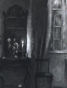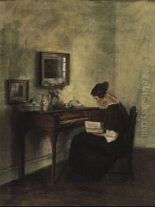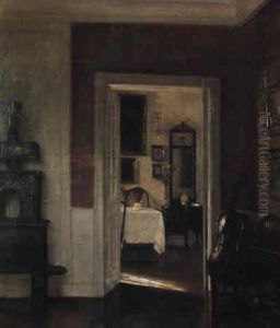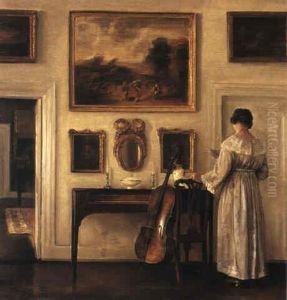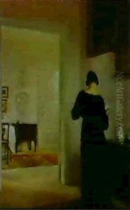 Interior Med Kunstnerens Hustru Staende Rygvendt Ved En Kommode