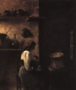 Interior Med Kunstnerens Hustru Ved Sytojet