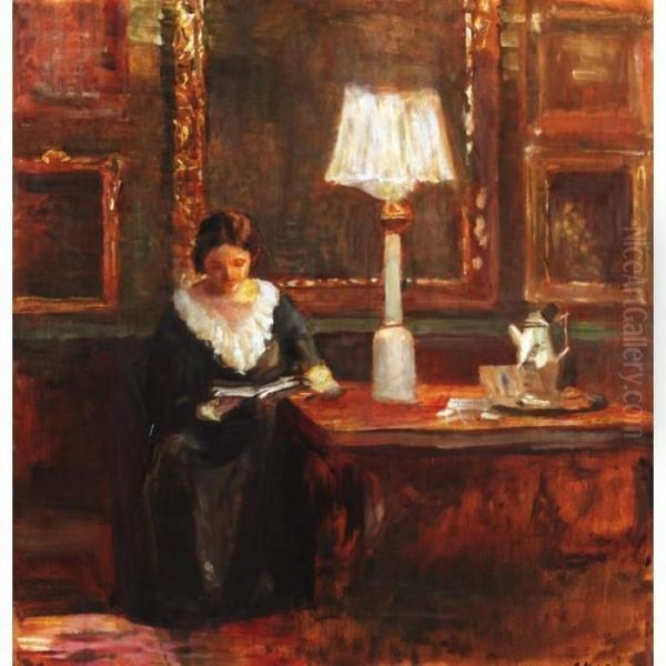 Lady Reading By A Lamp