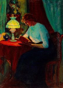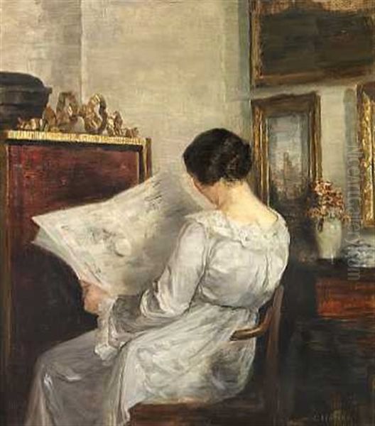 Laesende Dame Oil Painting by Carl Vilhelm Holsoe