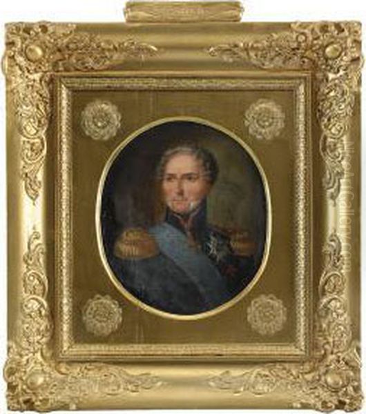 Portratt Av Karl Xiv Johan Kladd I Uniform Med Serafimerordens Bla Band - Midjebild