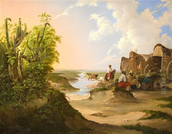 Rastende Viehhirten Mit Planwagen