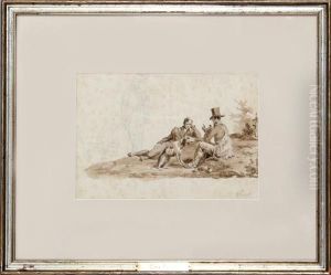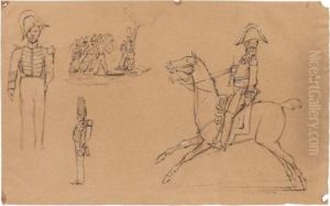 Un Groupe De Treize Caricatures, Paysage; Chasseur (recto) Chienne Et Ses Chiots (verso)