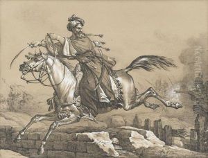 Un Mameluk Entrainant Son Cheval, Une Citadelle Al'arriere-plan