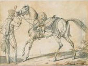 Hussard Et Son Cheval [antoine-charles-horace Vernet, Called Carle Vernet ; Hussar And His Horse ; Pen And Wash ; Signed Lower Right Carle Vernet]