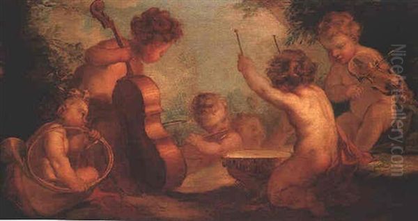 Putti Playing Musical Instruments In A Landscape
