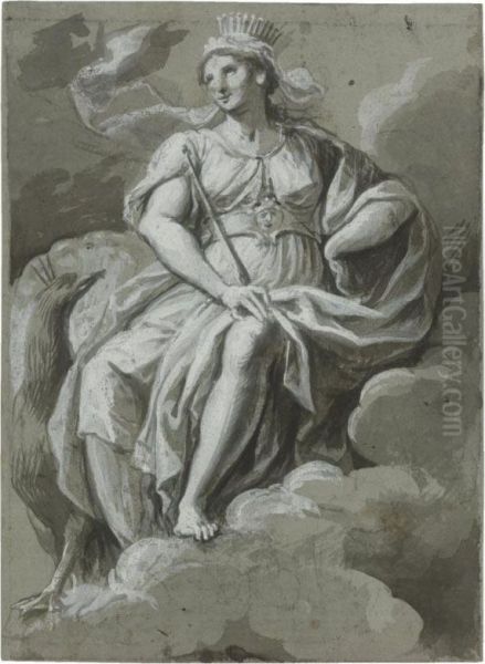 Juno Seated In The Clouds, A Peacock By Her Side