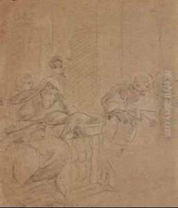 Angels Kneeling Near A Book And A Cardinal's Hat, Two Putti Bearing A Martyr's Palm Above: A Fragment