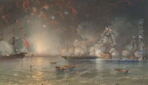 Mittelmeerlandschaft Mit Historischer Szenerie Der Italienischenbefreiungskriege Unter Garibaldi