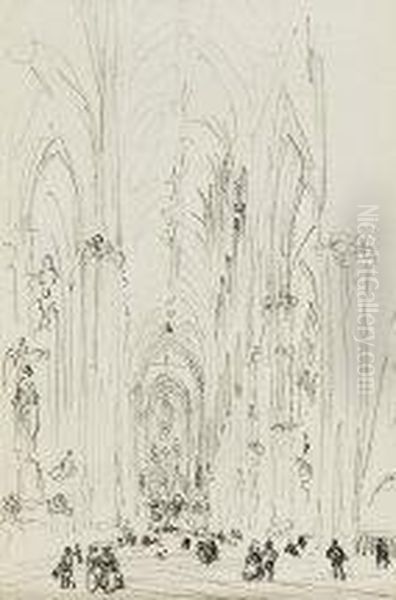 "londra, Interno Della Cattedrale Di Westminster" (sul Retro Cinque Disegni A Matita)