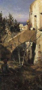 Italian Lady Collecting Water And Flowers