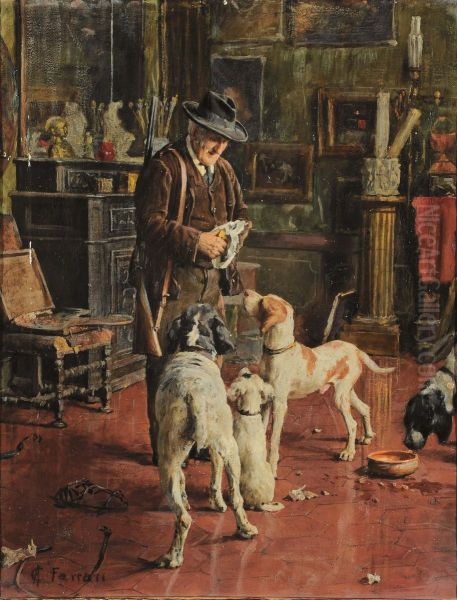 Bring the timeless beauty of Carlo Ferrari's Cacciatore Con Cani into your home with a handmade oil painting reproduction. Carefully recreated on canvas by skilled artists using traditional techniques, this piece captures the delicate brushwork, subtle light, and vibrant color of the original masterpiece. With museum-level quality and rich texture, it brings elegance and artistic depth to any space. Enjoy free shipping and make this masterpiece a part of your personal collection.