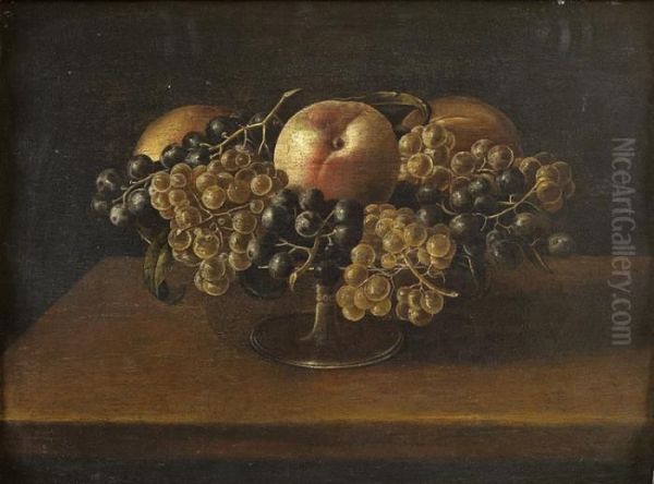 Nature Morte Aux Raisins Et Aux Peches Dans Une Coupe De Verre