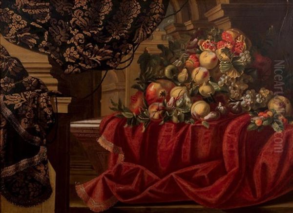 Nature Morte Aux Grenades, Raisins Sur Un Tapis Brocarde