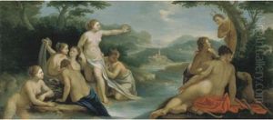 Carlo Maratta, sometimes spelled Maratti, was a prominent Italian Baroque painter active primarily in Rome during the late 17th century. Born on May 13, 1625, in Camerano, a small town in the Marche region of Italy, Maratta showed an early inclination towards the arts. He moved to Rome at a young age, where he became an apprentice under the tutelage of Andrea Sacchi, a leading painter of the time known for his classical approach to art, which greatly influenced Maratta's style.