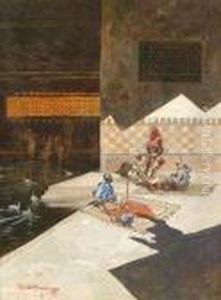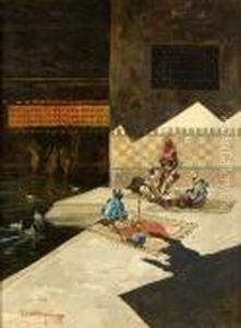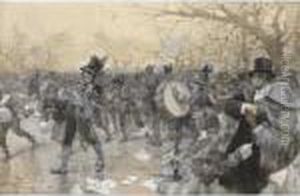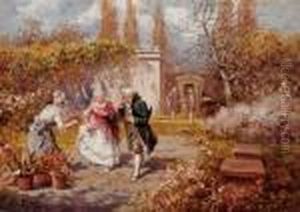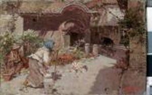 Musicians And Dancers In A Moonlit Courtyard; Peasants Watching A Group Of Men In A Dispute In Sunlit Courtyard