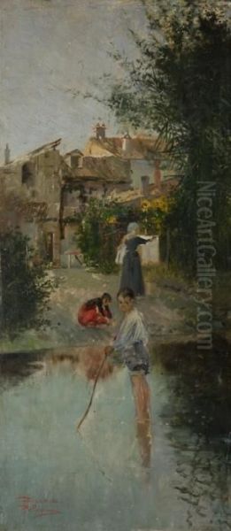 Bring the timeless beauty of Carlo Pellegrini's Donna Che Stende I Panni E Bimbi Nei Pressi Di Un Corso D""acqua Con Case Sullo Sfondo into your home with a handmade oil painting reproduction. Carefully recreated on canvas by skilled artists using traditional techniques, this piece captures the delicate brushwork, subtle light, and vibrant color of the original masterpiece. With museum-level quality and rich texture, it brings elegance and artistic depth to any space. Enjoy free shipping and make this masterpiece a part of your personal collection.