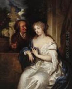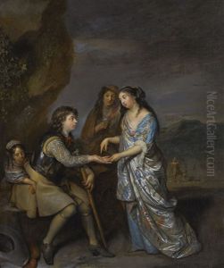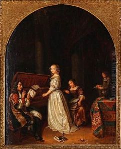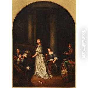 A Lady Reading A Letter To A Gentleman Holding A Mandolin, In An Interior