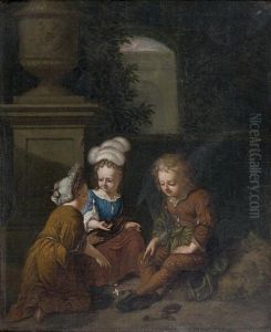 Portrait Of Pieter Rendorp, In A Brown Robe With A White Chemise And Jabot, Seated Near A Pedestal, A Landscape Beyond (+ Portrait Of Johanna Hulft; Pair)