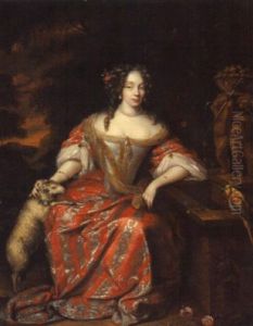 Portrait Of Princess Henrietta Anna Stuart Of England In A Red And Orange Dress, Holding A Portrait Of Philippe D'anjou, Duke Of Orleans