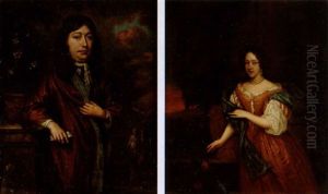 Bildnis Eines Vornehmen Herrn (+ Bildnis Einer Vornehmen Dame Mit Hundchen Vor Einer Fensteroffnung Mit Ausblick In Einen Schlosspark; Pair)