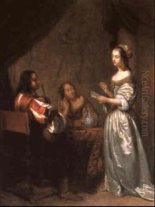 Portrait Of A Gentleman, Smallhalf Length, Wearing A Black Costume, Holding A Letter