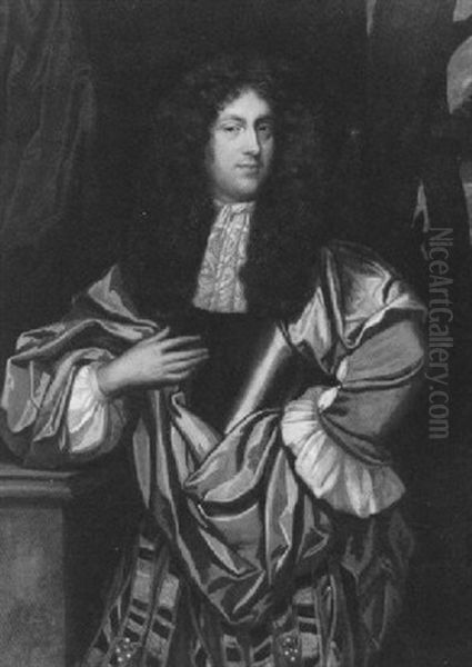 Bildnis Eines Herrn, Sich Auf Einen Sockel Stutzend Oil Painting by Caspar Netscher
