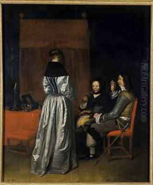 Bring the timeless beauty of Caspar Netscher's The Visit 1655 into your home with a handmade oil painting reproduction. Carefully recreated on canvas by skilled artists using traditional techniques, this piece captures the delicate brushwork, subtle light, and vibrant color of the original masterpiece. With museum-level quality and rich texture, it brings elegance and artistic depth to any space. Enjoy free shipping and make this masterpiece a part of your personal collection.