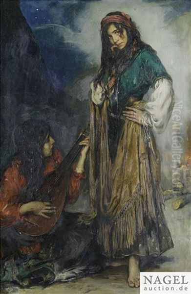 Two Gypsy Girls At A Fireplace