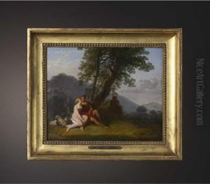 A Woman Addressing A Seated Nude In A Classical Landscape