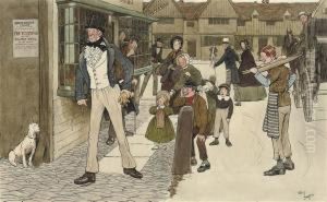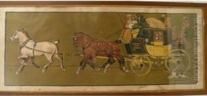 A Heavily Laden Stagecoach Arriving At The Inn, With A Terrierwatching On In Fascination