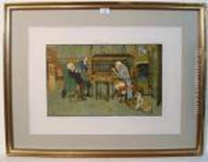Gentleman Holding A West Highland Terrier, With A Cat Looking On