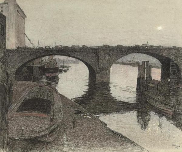 London Bridge Oil Painting by Cecil Charles Aldin