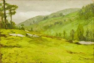 Paesaggio Montano Con Alberi E Prato Verdeggiante, Cime Sullo Sfondo