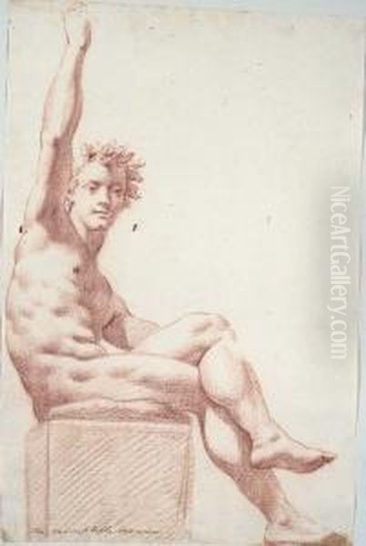 A Seated Nude Wearing A Crown Of Oak Leaves, His Right Arm Raised