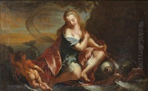 Bacchus Scene With Two Nymphs, Putti And A Satyr At A Fountain