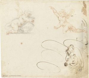 Putti With Flowers Disporting Amongst Clouds