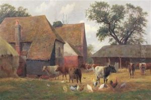 A French Farmyard With Poultry And Children