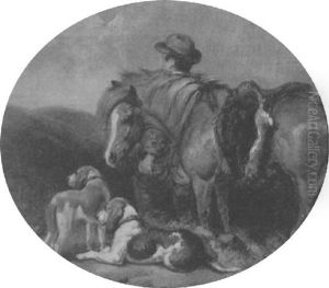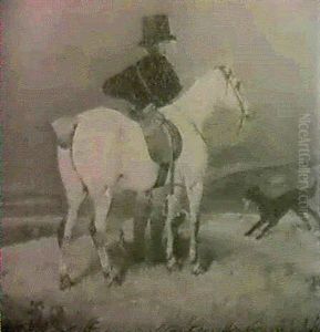 A Gentleman With A Grey Pony And Two Retrievers In A Landscape