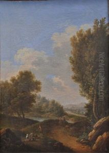 Romantic Forest Scene, Reclining Girl (artemis?) With Deer