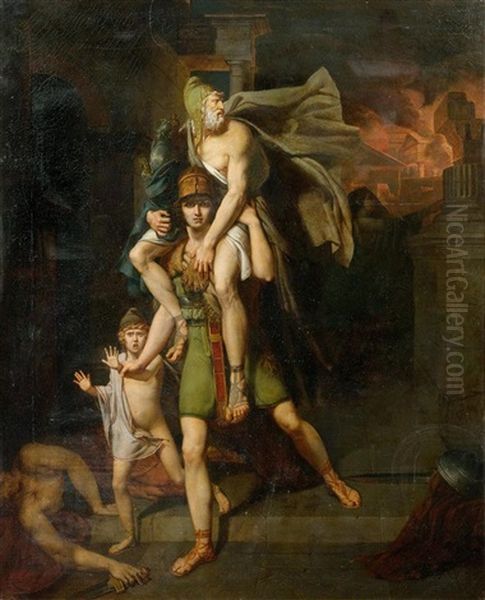 Aeneas Fleeing With His Father Anchises And Son From The Burning City Of Troy