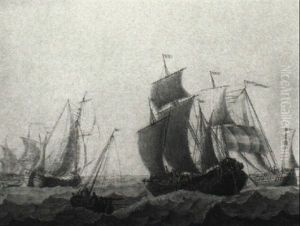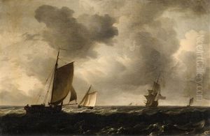 A Small Man-o'war At Anchor With Cutters Under Sail
