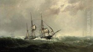 Men-o-war Reefed-down And Riding Out A Gale