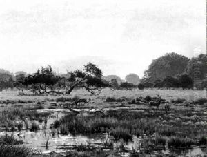 A Shady Nook/landscape With Deer