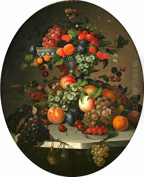Still Life Of Fruit In An Ewer On A Marbletable