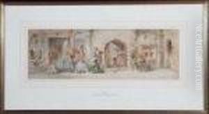 Figures In Fancy Dress, Arriving At A Ball In Anitalianate Landscape And Figures By A Walled European Town
