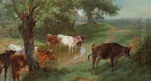 Cattle Watering In A Landscape