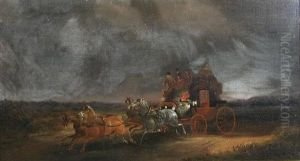 A Mail Coach Before A Farmstead; A Cart And Horses And A Mail Coach Before An Inn