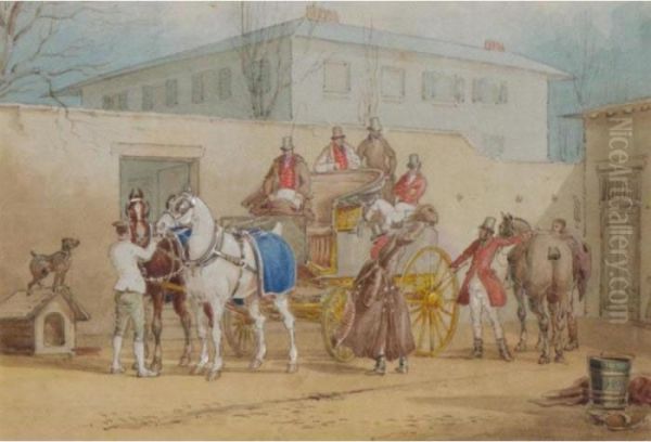 A Coach And Horses In A Stable Yard