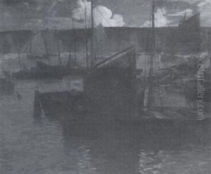 Barques De Peche Par Grand Calme Au Soleil Couchant